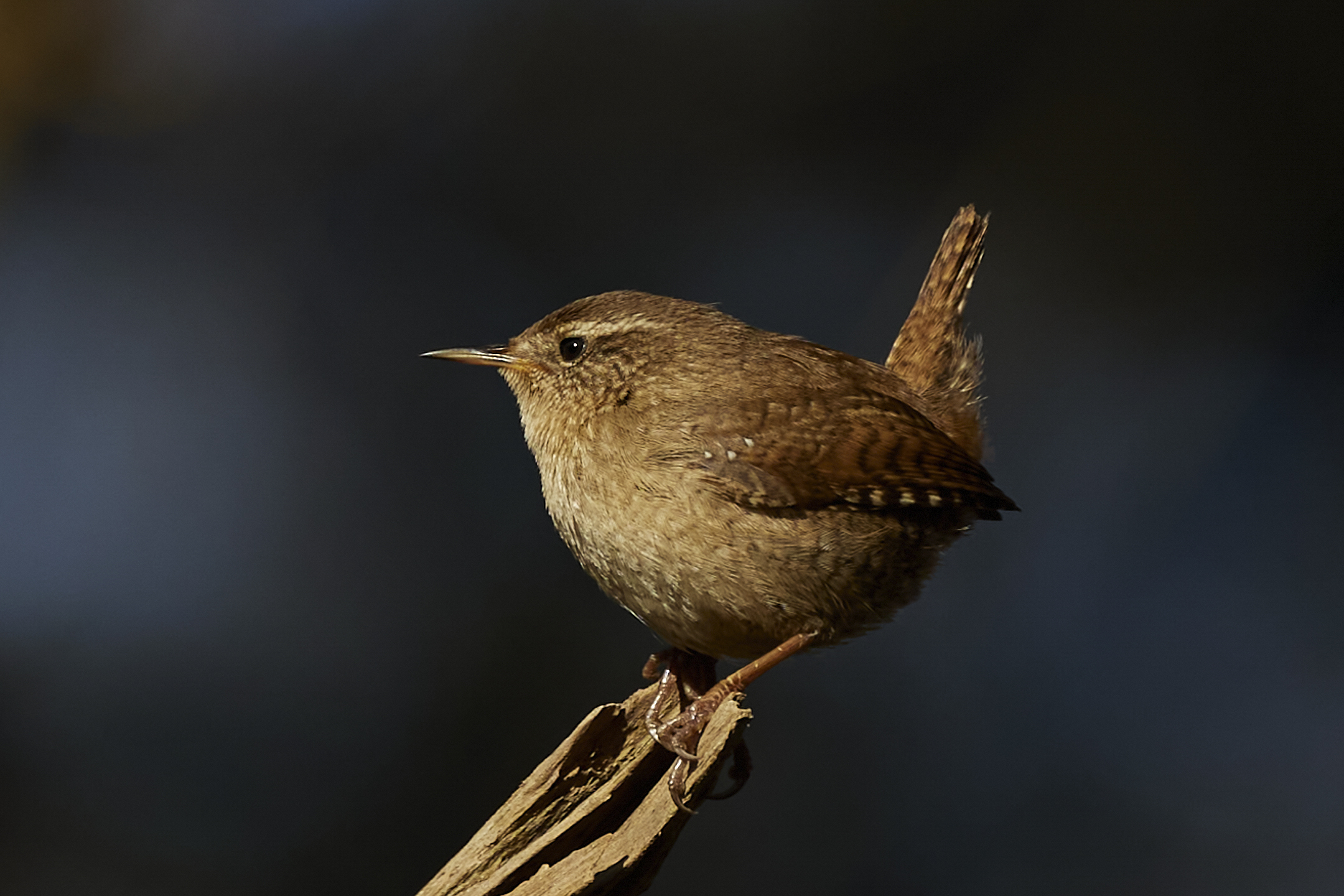 Nog iets over de soortnaam van het winterkoninkje. De wetenschappelijk naam van dit kleine vogeltje, Troglodytes troglodytes, betekent eigenlijk ‘holbewoner’, dat komt door het bolvormige nest dat het maakt. Echter, volgens een Griekse sage wilden de vogels een eigen koning. De vogel die het hoogst kon vliegen, zou daartoe uitverkoren worden. De slimme Troglodytes troglodytes bedacht een list van mythische proporties: hij verstopte zich tussen de veren van een arend. Toen de arend op zijn hoogste punt vloog en dacht hiermee de koning van alle vogels te worden, kwam het kleine vogeltje uit de veren tevoorschijn en vloog zelf naar nog nét iets hoger. De wrevel van de andere vogels deed hen de winterkoning in een valstrik lokken. Ze wezen het winterkoninkje erop dat een koning niet alleen majestueus in het blaue hinein moet kunnen zweven, maar ook in het diepst van de bruine aarde moet kunnen kruipen. Het vogeltje, ook wel vergeleken met een muis kroop daarop in een klein muizenholletje , waarna de andere vogels een uil aanstelden om het hol te bewaken als een cipier, levenslang in het donker opgesloten. Helaas voor hen, de uil viel in slaap, de Troglodytes troglodytes ontsnapte en kreeg zijn naam voor eens en altijd. Ja ja, het is niet allemaal pais en vree in vogelland, soms is een grote roofvogel zoals de buizerd of de adelaar zelf vriendelijker voor kleinere vogels dan die kleine opgewonden standjes voor hun soortgenoten. Het blijft voor ons aan de aarde gebonden wandelaars gelukkig leuk om ze te horen en te zien.